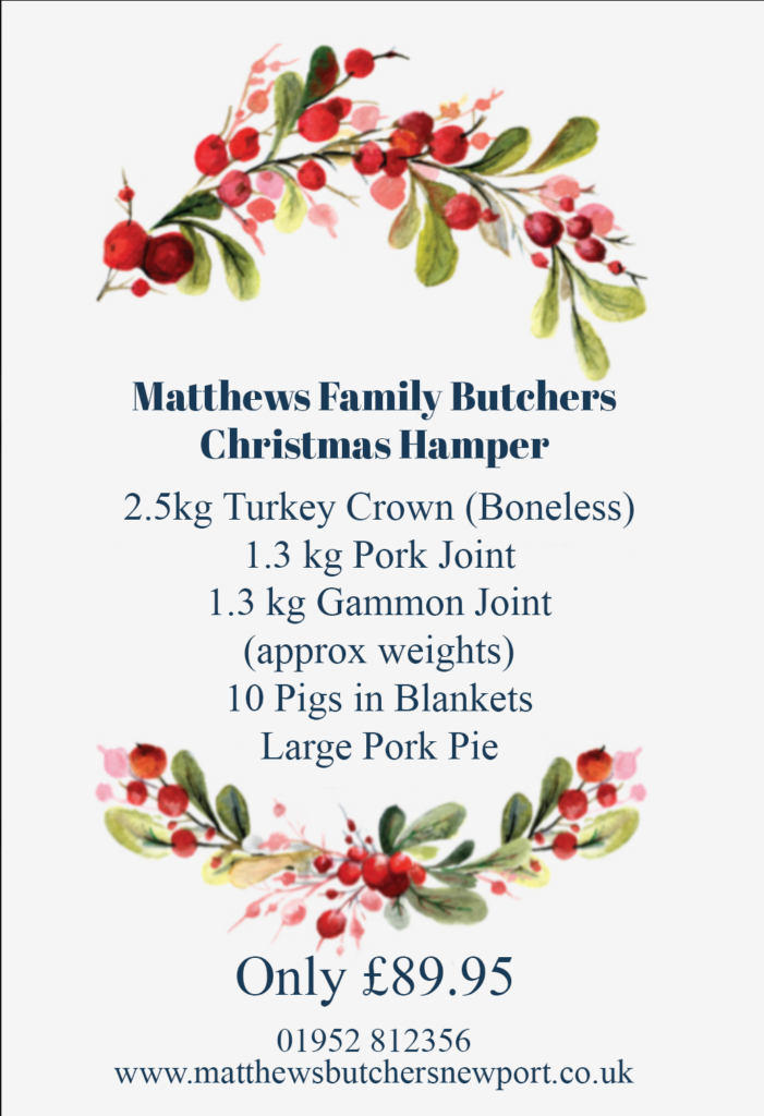 We are now taking orders ready for Christmas. Have a look through our product list and decide what takes your fancy this year. Once you've decided, place your order through our easy to use order form or contact us on 01952 812356. Prices available on request.